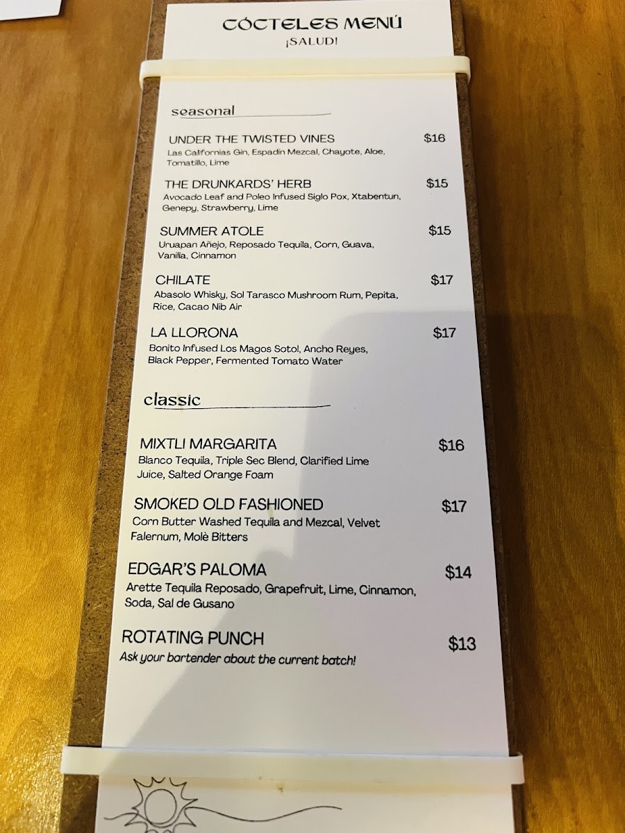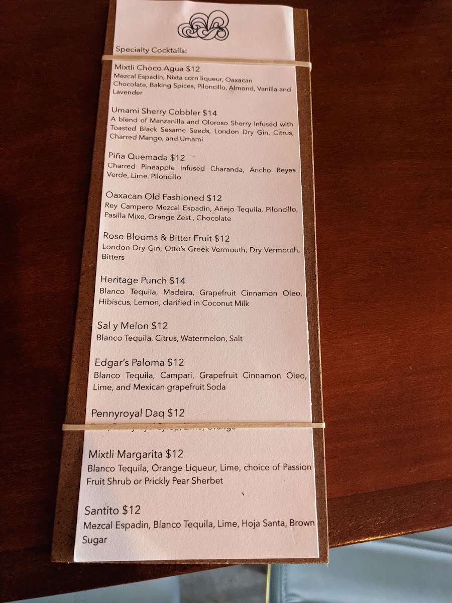 Introducing the menu at Mixtli is a sensory journey that artfully explores the rich culinary heritage of Mexico, particularly focusing on the fall of the Aztec Empire. Nestled in the heart of San Antonio, each dish tells a captivating story, meticulously prepared with passion and attention to detail. Diners are greeted with an impressive selection of specialty cocktails, like the Casa De Azulejos, which perfectly complements the vibrant flavors of the menu.
